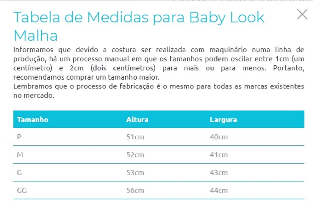 Temos camiseta ou babylook, tabela de tamanho nas fotos.
